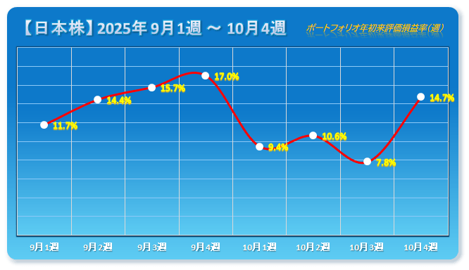 自己保有銘柄の含み損益、今週の騰落パフォーマンスランキングは以下の通り。