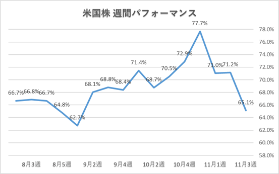 今週も弱さが目立ち、主力のエヌビディアをはじめとして半導体が大きく売られたのが痛かったですね