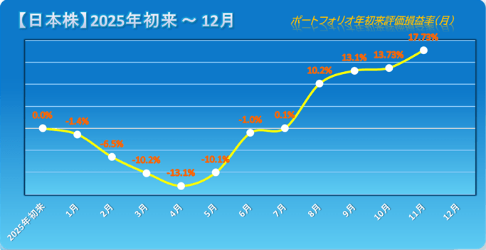 年初からの売却および含み評価損益:+18.04%(前月比:+3.99%)