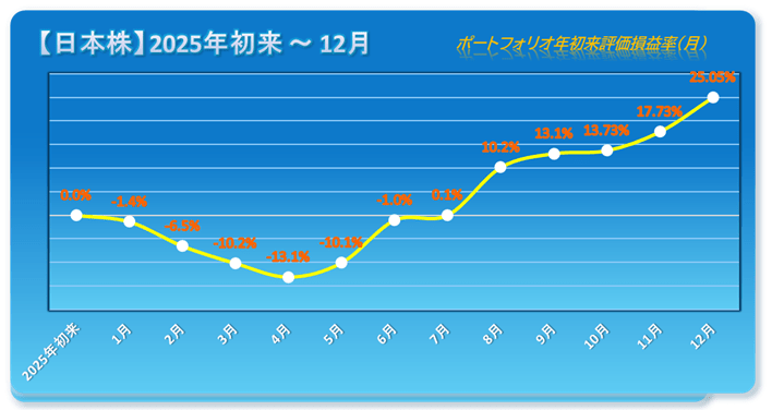 年初からの売却および含み評価損益:+25.05%(前月比:+7.01%)