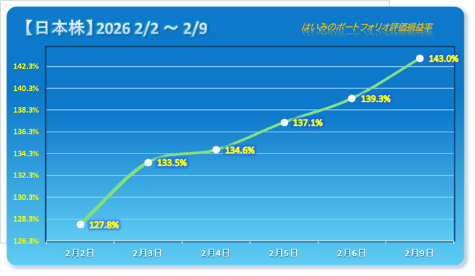 保有株全体は指数ほどのインパクトはないものの、今年2番目の上昇幅で5連勝。