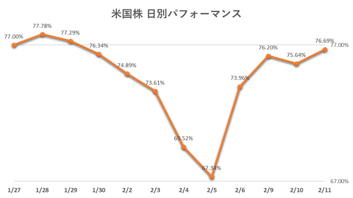 【米国株】「ソフトウェア苦戦続くも、主力が頑張りPF反発」 2026年2月11日 パフォーマンス