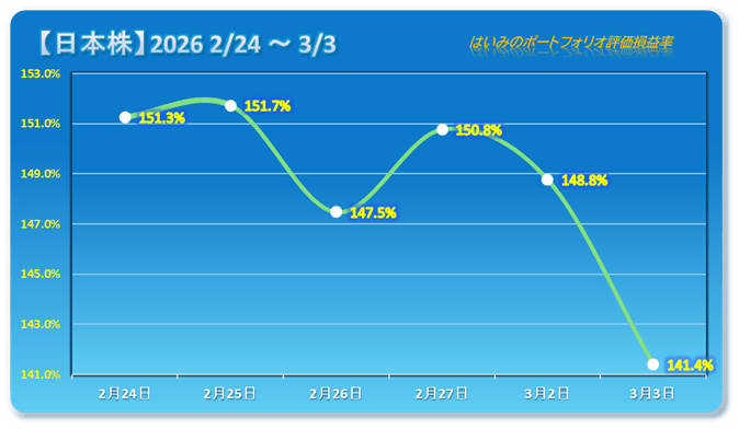 保有株全体は今年最大の下落幅、人生でも過去7位と厳しい下げ。