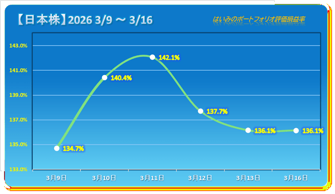 保有株全体はヨコヨコながらわずかに下落で3連敗。