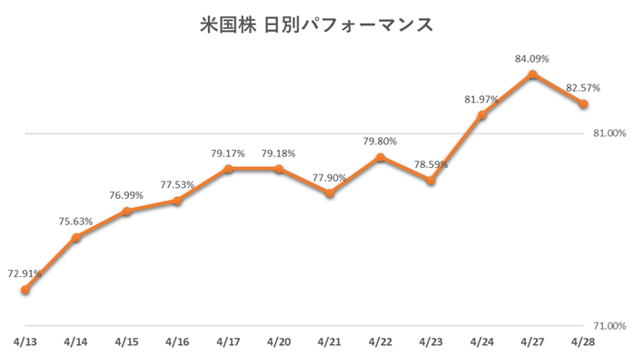 【米国株】「3日ぶりの前日比マイナス」 2026年4月28日 パフォーマンス