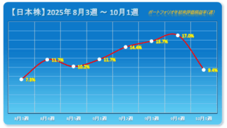 日本株 【日本株 週間成績】「今年2番目下げ幅で6週ぶりの反落」 10月1週 保有銘柄パフォーマンス(2025/10/3時点) 今週の日経平均株価日経平均株価は400円高という結果ですが、内容はかなり弱かったです。ポートフォリオ 今週の成績上昇・変わらず・下落保有している全143銘柄中、上昇が6、変わらずが1、下落が136勝敗数・金額の増減・評価損益率勝敗数では1勝... 2025.10.05 日本株週間成績