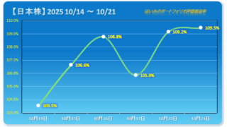 日本株 【日本株】久々に値動きの少ない日、苦戦しつつもわずかに続伸 【2025/10/21】 本日の主な指数日経平均株価は+0.27%、TOPIXは+0.03%、グロース250は-0.06%。 久しぶりに値動きが少ない1日でしたね。 本日の保有銘柄ポートフォリオの結果 保有株全体は弱いながらも続伸。 保有銘柄全体 +109.47%... 2025.10.21 日本株